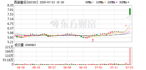 7月23日,西部建设(002302)发布公告,公司股票在2025年7月21日、22日及23日连续3个交易日,收盘价格涨幅偏离值累计超过20%。